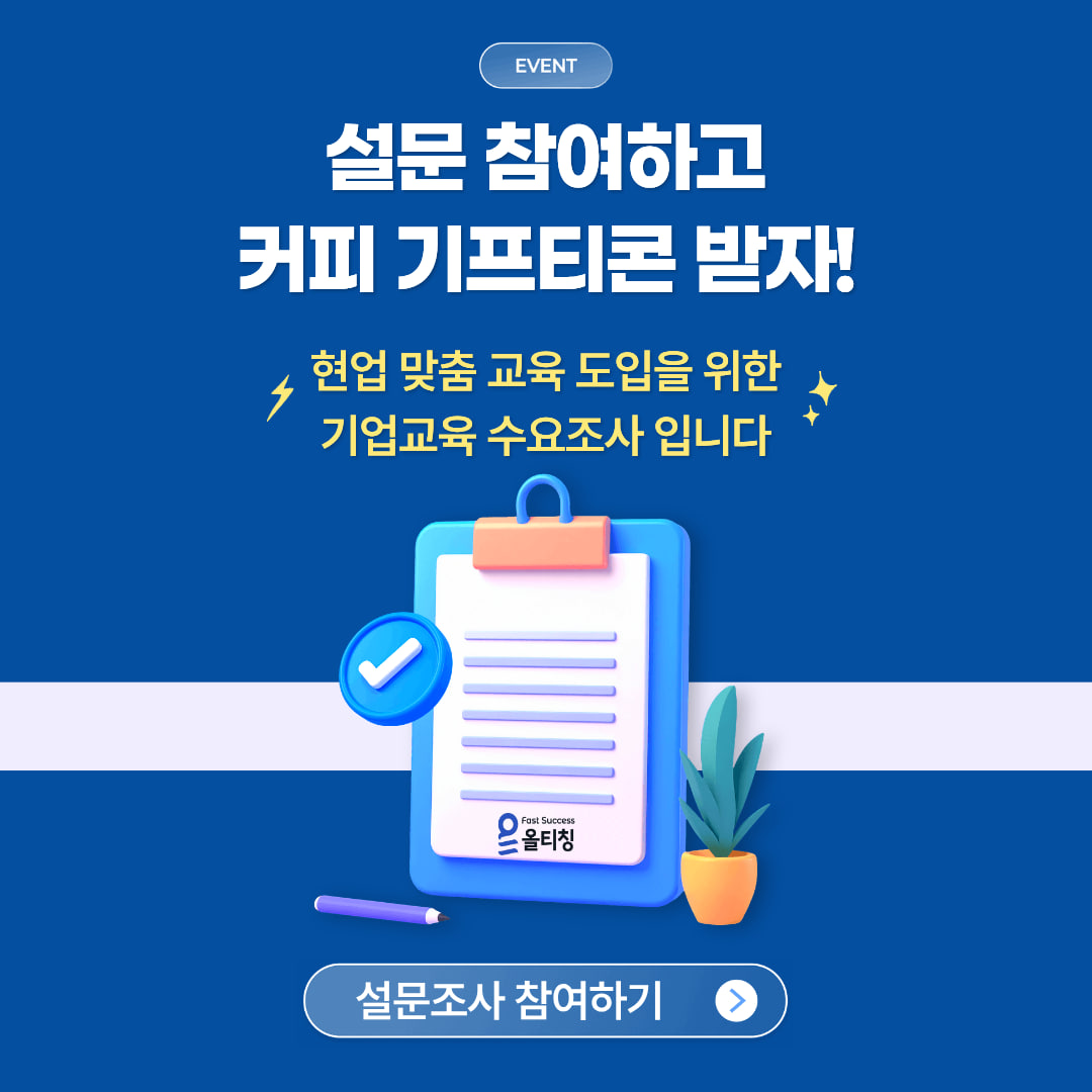 사업주 및 교육담당자분들을 대상으로 2026년도 기업 직무교육 수요조사를 진행하고 있습니다.